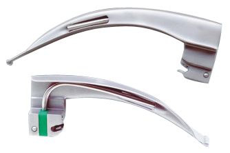 Reusable Profession Maclntosh Fiber optic Laryngoscope Blades. These blades are made of Grade 304 Stainless Steel (Non-Megnetic)., fitted with Glass Fiber Optic light guide covered with stainless steel pipe.