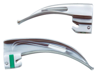 Economical Maclntosh Fiber optic Laryngoscope Blades. These blades are made of Grade 304 Stainless Steel (Non-Megnetic)., fitted with plastic heal fitted with plastic Fiber Optic light guide.